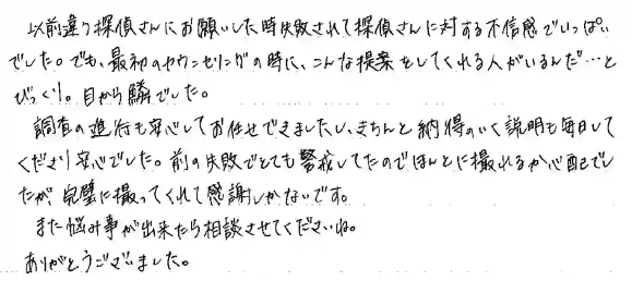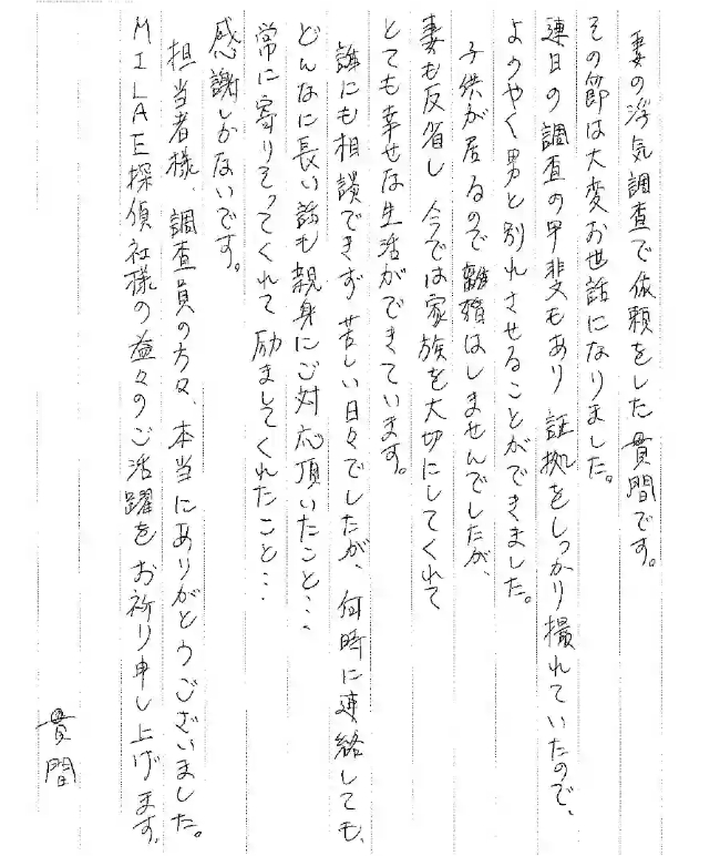 設立してからの年数は短いものの、大手探偵事務所で7年以上の経験を経てMILAE探偵事務所を設立いたしました。